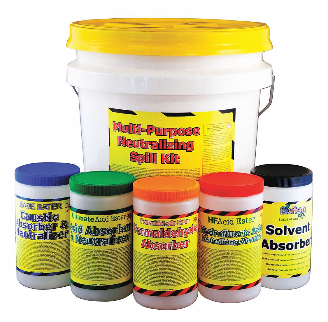 SPILL WIZARDS Spill Kit, Neutralizes Chemical Type Acids; Bases from www.grainger.com